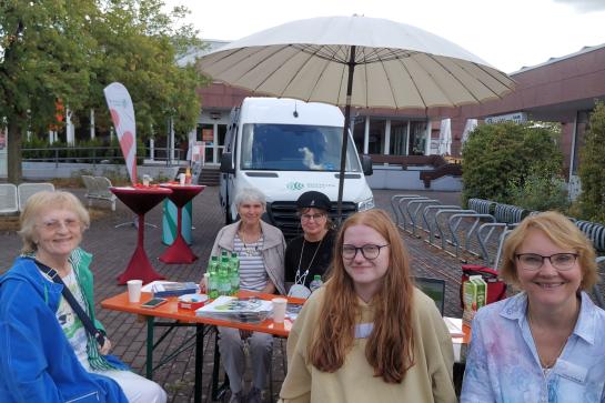 Heute Nachmittag ging es für uns nach Dreieich. Dort war schon alles für unseren Besuch vorbereitet. So hatte Frau Buchwald von der Stadt Dreieich bereits Tische und Bänke mit Getränken, Süßigkeiten und Infomaterialien für die Besucher:innen bereitgestellt.
